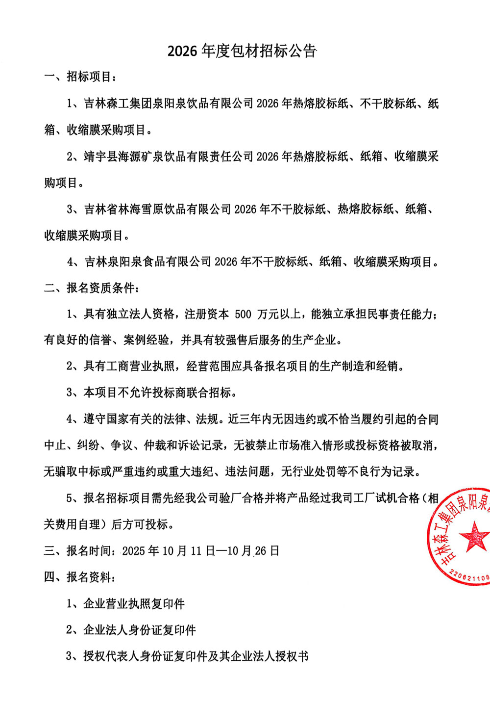 吉林森工集團泉陽泉飲品有限公司