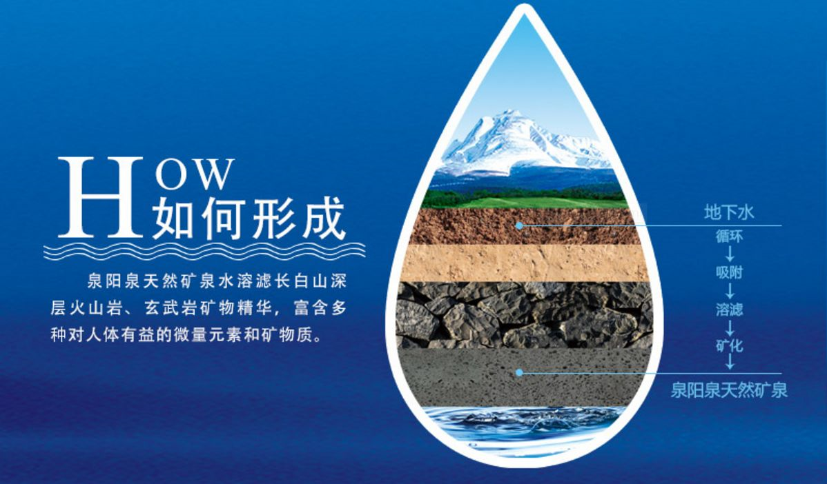? ? ? ?水源自地下1600米,歷經(jīng)50年,運移10000公里,經(jīng)千年循環(huán)、吸附、溶濾、礦化而成,自然涌出地面,水質(zhì)天然。含硅、鋅、鉬、釩、硒、碘等多種微量元素,為國際流程的低鈉、低礦化度、重碳酸鈣鎂型礦泉水,呈弱堿性,PH值為7.10—7.60,十分接近人體內(nèi)環(huán)境,天然恒溫8℃,口感甘甜清冽,是適合飲用的好水。