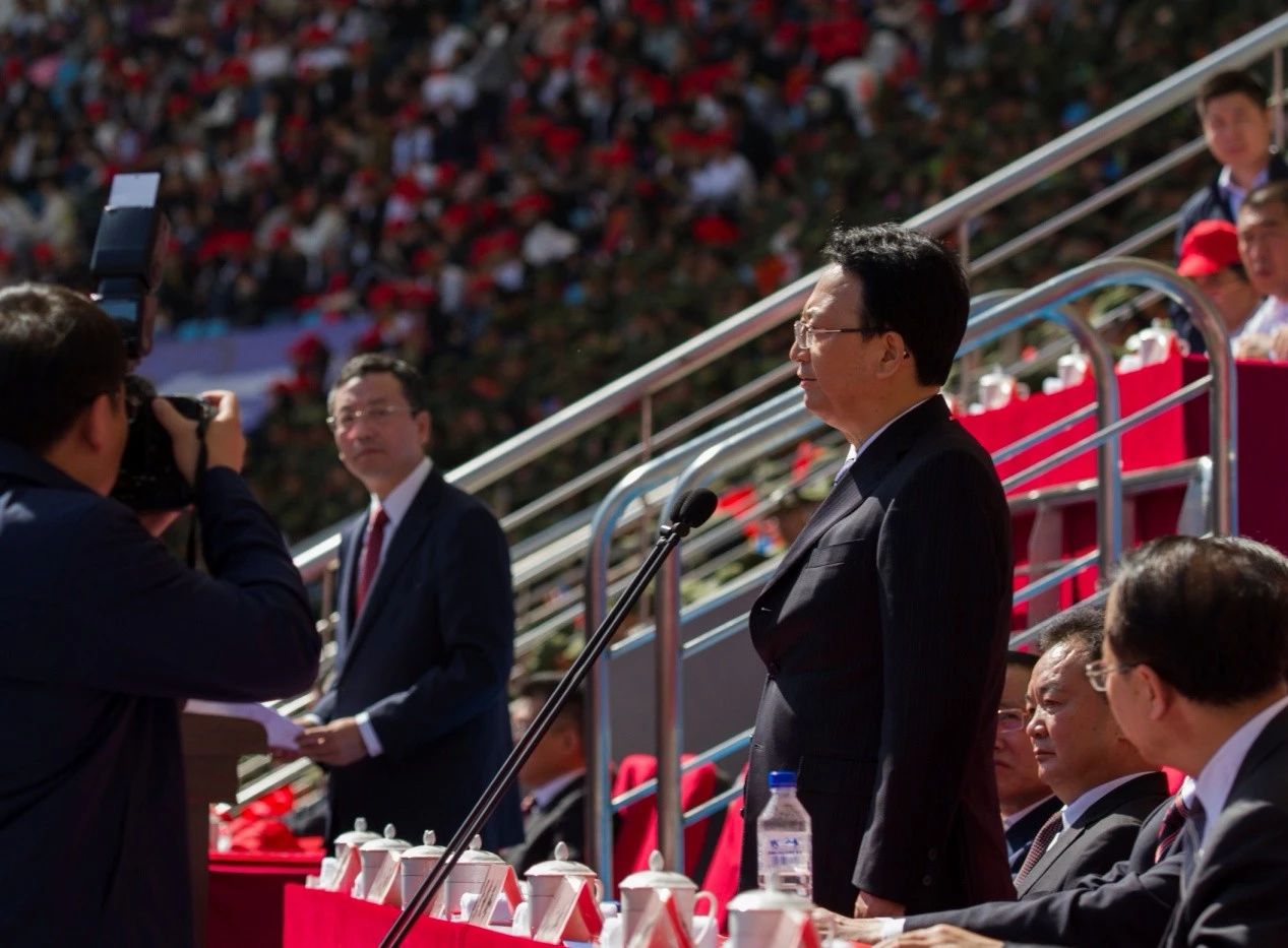 活動當日,長春奧林匹克公園體育場座無虛席,上萬名觀眾云集于此,共同見證這一體育盛事。伴隨著嘹亮的音樂,鮮艷的五星紅旗引領(lǐng)吉林省第十八屆運動會會旗和吉林省第十八屆運動會會徽旗進入會場。